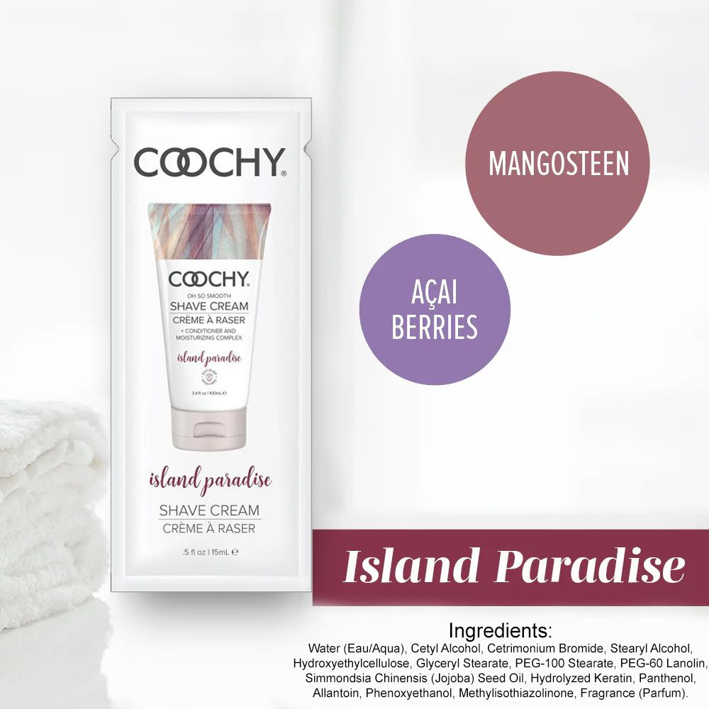 Pour parfaire l’expérience, ce coffret inclut une Coochy Cream 15 ml parfum Island Paradise, enrichie d’açai et de mangoustan. Ce soin luxueux transforme la routine de rasage en rituel de douceur, laissant la peau soyeuse et délicatement parfumée.