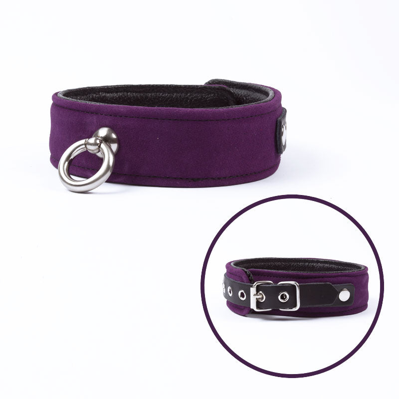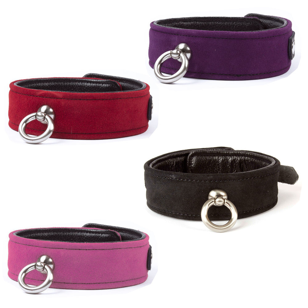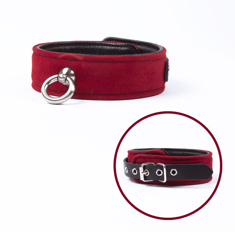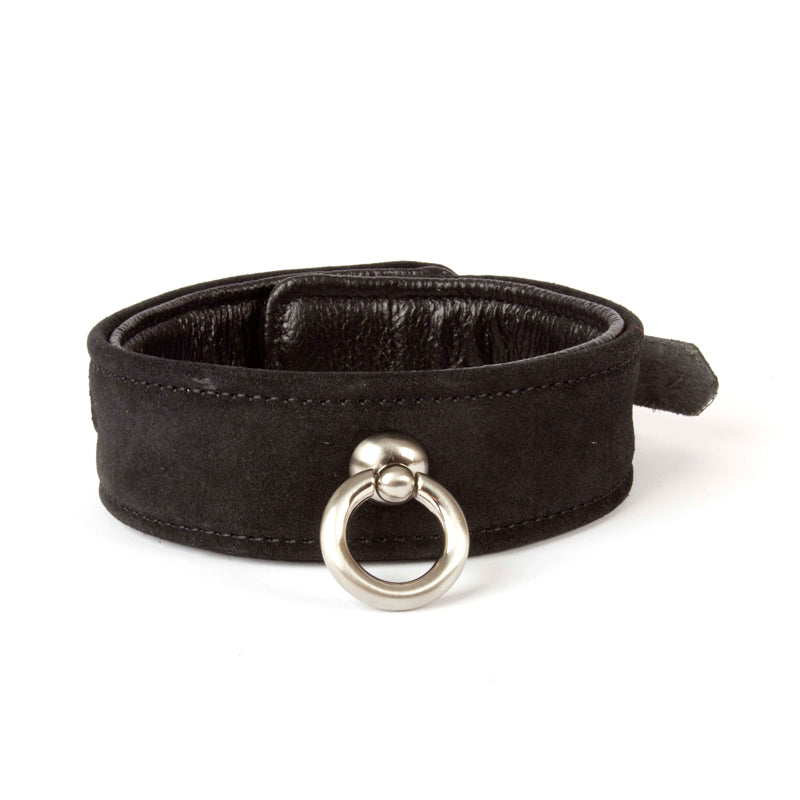 Avec un anneau au centre idéal pour y accrocher une laisse le collier ajustable fait de suède et de cuir est un accessoire classique pour pimenter les jeux érotiques de soumission.