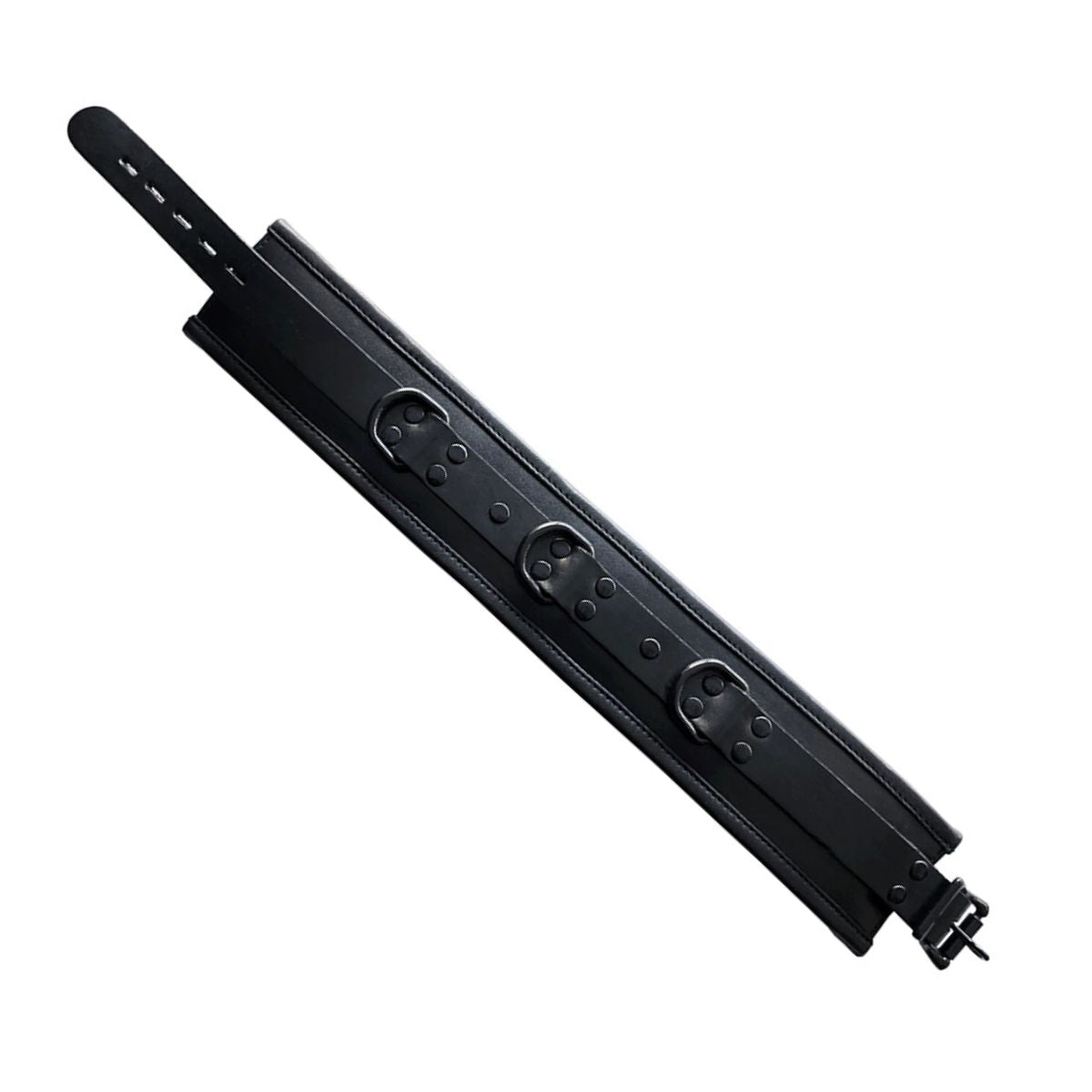 Indispensable pour les scènes structurées et les dynamiques de pouvoir, le collier rembourré en cuir noir à 3 anneaux en D est à la fois fonctionnel et visuellement saisissant. Il incarne l'autorité, l'élégance et le contrôle, sublimant chaque interaction avec intention, retenue et un style indéniable.
