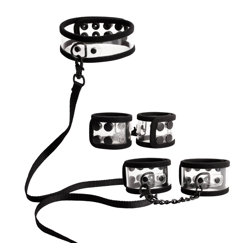 Un style un peu plus osé vous est proposé par Miss Morgane. Découvrez Plaisir Torride un ensemble de menottes pour poignets et pour chevilles ainsi qu’un collier avec une laisse. Ajustez les menottes et le collier à la dimension désirée puis le tour est joué!