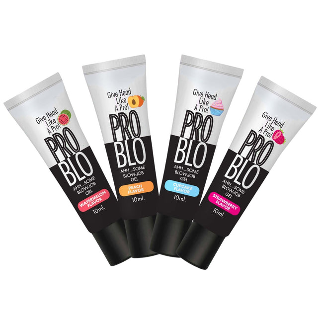 Disponible en 4 saveurs alléchantes Cupcake, Pêche, Fraise et Pastèque, pour que chaque bouchée devienne une aventure savoureuse. Avec sa texture soyeuse, Pro Blo lubrifie la bouche pour une glisse parfaite et une expérience plus humide et sensuelle.