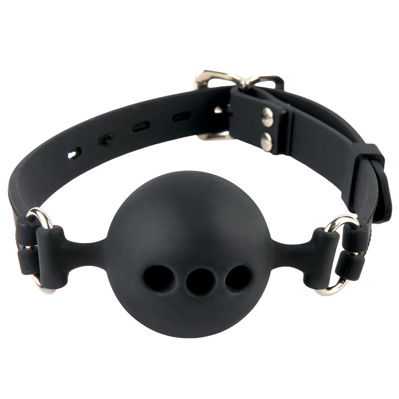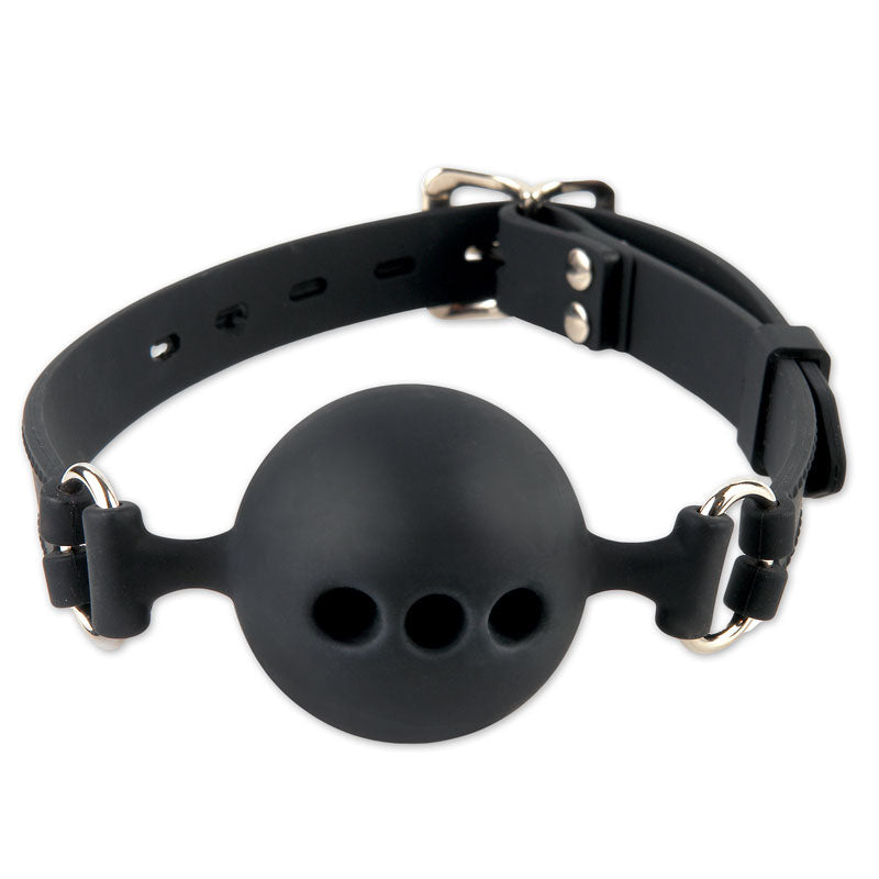 Idéal pour les débutants ou les enthousiastes ce bâillon rond présente 3 trous permettant de respirer aisément. Il est fabriqué de silicone ultra douce. La courroie pour la tête est ajustable. Spécifications : - Nettoyer avec un nettoyant pour jouet érotique et de l’eau tiède - Grandeurs : 1.5 po (Petit) 1.75 po (Moyen) 2 po (Grand) - Bâillon : 100% silicone hypoallergénique sans goût