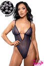Faites scintiller vos courbes avec ce teddy en résille à rayures orné de strass étincelants. Conçu pour séduire, il présente des bretelles ajustables et de précieux bijoux décoratifs sous la poitrine, soulignant la silhouette avec élégance.