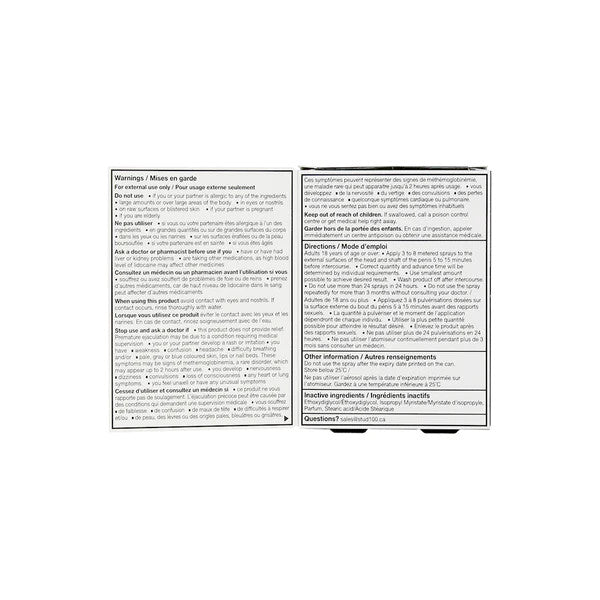 - Cet emballage particulier pour STUD 100® est UNIQUEMENT éligible à la vente au Canada. Veuillez localiser STUD 100® à vendre dans votre propre pays si vous êtes à l'extérieur du Canada. Toutes les commandes non canadiennes pour STUD 100® ne seront pas acceptées.
