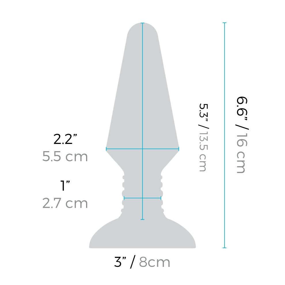 La pointe effilée du Rimming Plug XL rend l'insertion progressive et plus confortable à gérer, tandis que la large base en forme de T empêche tout accident non désiré pendant le jeu anal.