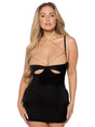 The back is equally captivating: an open back with bold cutouts highlights the finesse of the coordinating sheer mesh thong, revealing just enough to spark the imagination. Delicately integrated adjustable chains add a touch of sparkle and allow you to adjust the fit for a flawless fit.