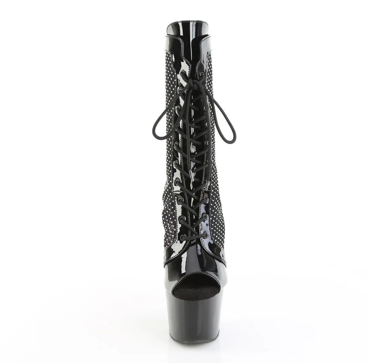 Platform Boot Rhinestone & Mesh 7" Heel - Black / 7 is backordered and will ship as soon as it is back in stock.